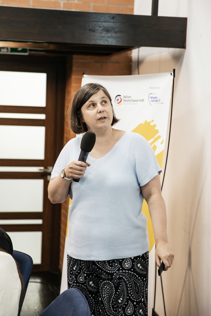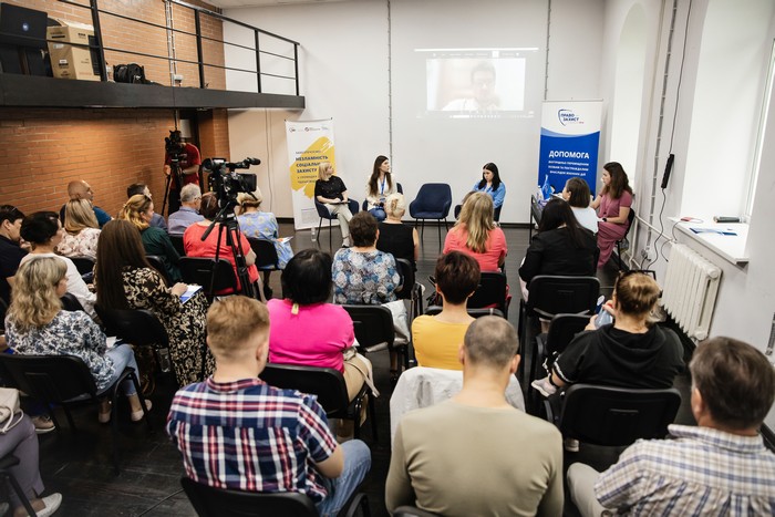 На початку заходу координаторка напрямку соціальної допомоги та захисту БФ «Право на захист» Ольга Носова розповіла про напрямок соціальної допомоги та захисту, який є у фонді та послуги, які надають працівники. Вона також наголосила на важливості розвитку соціальної сфери та вдосконаленню системи надання соціальних послуг в Україні.