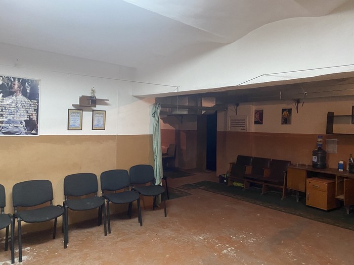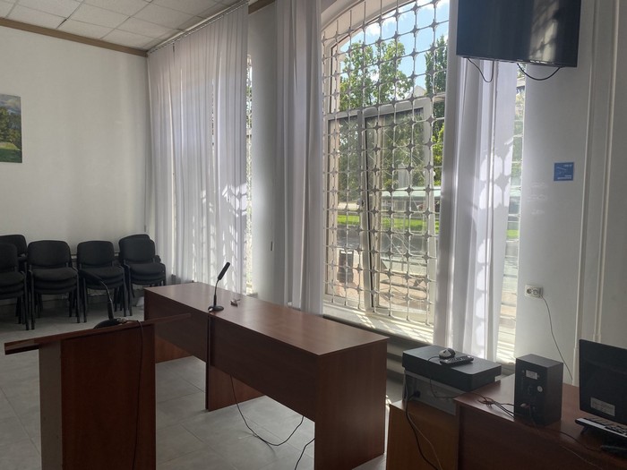Починаємо спілкування - і в цей час якраз оголошують повітряну тривогу. Спускаємося в укриття. Пані Тетяна говорить, що в мирні часи підвальне приміщення будівлі суду співробітники використовували для спортивних занять, зокрема, гри в настільний теніс. Зараз там - стільчики, кулер. Укриття.