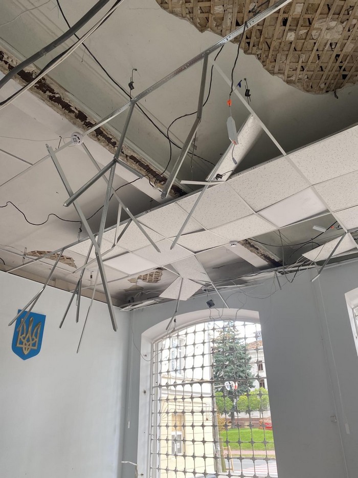 Він розповідає, що з 132 вікон у будівлі суду вибито 116. «Окремі вікна нестандартні за формою, а тому їх заміна вимагатиме часу», - вважає фахівець. Ще суттєвою проблемою є пошкодження даху - як власне покрівлі, так і деревʼяних балок.