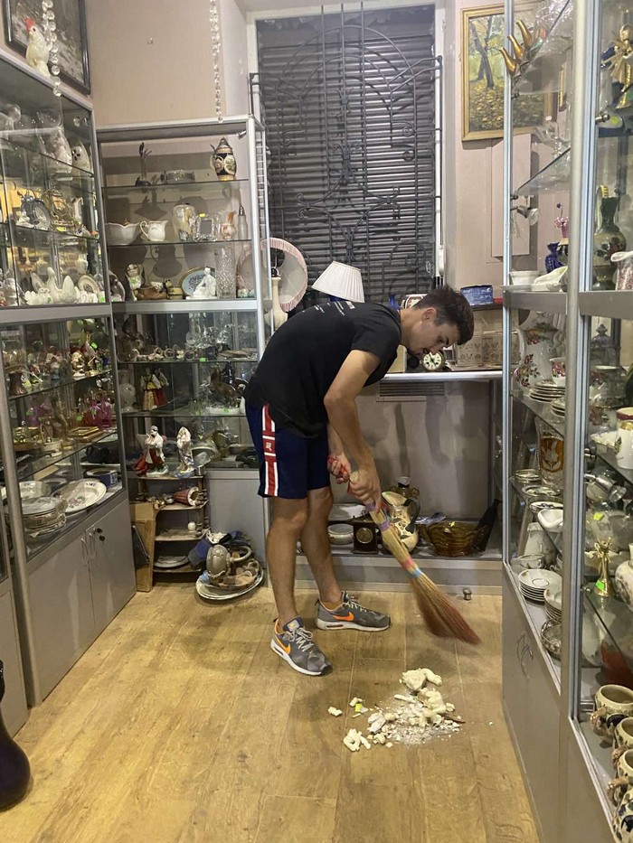 Власника антикварної крамниці «Антик» Олександра Єфіменко з синами Дмитром і Євгеном застаємо за прибиранням разом із родиною. Чоловік нарікає, що внаслідок ракетної атаки постраждало не тільки приміщення, а й антикварні речі, автомобіль, що був припаркований біля крамниці.