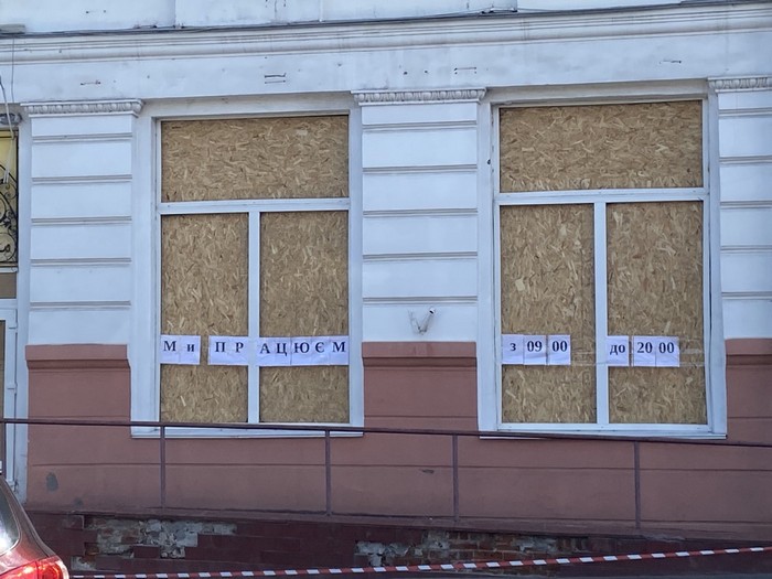 Кавʼярня «Золотий ключик», розташована у центрі Чернігова, мабуть, є одним із символічних закладів міста, куди ласувати десертами ходило не одне покоління містян. Після ракетної атаки вона відновилася швидко, у вівторок уже приймала відвідувачів. Напередодні на закритих фанерою вікнах зʼявився напис «працюємо з 9.00 до 20.00» як символ стійкості і незламності.