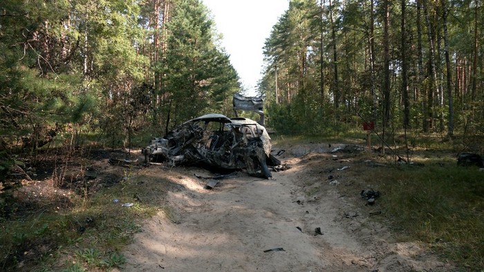 Зараз залишки авто, в якому загинуло подружжя, пересунули на декілька метрів від місця, де трапився вибух.