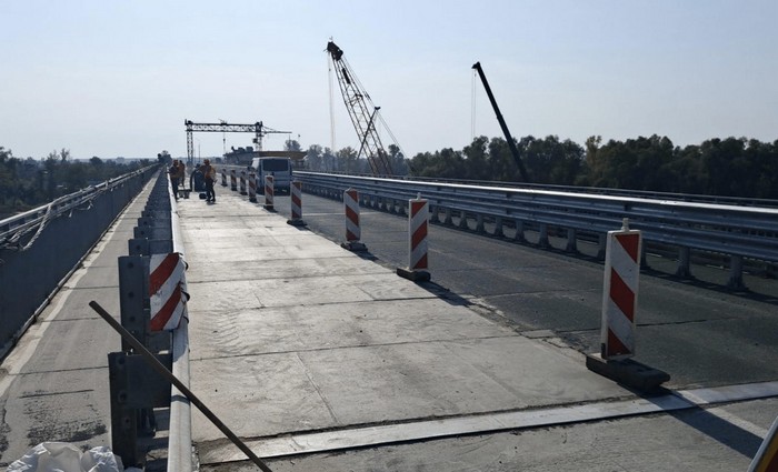 Після колосального об'єму робіт, із залученням вололазів та саперів, улітку 2023 року було відкрито проїзд тимчасовим мостом. Новий, на 4 смуги руху, плануємо збудувати до кінця 2024 року.