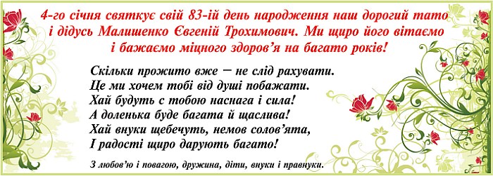 Уважаемые посетители сайта Gorod.cn.ua. В нашей новой рубрике вы можете поздравить своих родных, любимых, друзей, коллег с важными для них событиями. Спешите сказать вашим близким теплые слова, ведь для каждого человека это важно – чувствовать, что его любят.