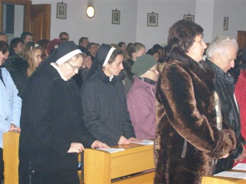 Різдвяна служба тривала рівно годину 18 хвилин, тобто досить недовго у порівнянні з православними богослужіннями. І за цей час настоятель храму о. Яцек Пиль встиг проголосити дуже зворушливу проповідь про значення Різдва та християнську любов, а також причастити парафіян. Здивувало мене те, що у цьому храмі немає іконостасу і всі дії священиків відбуваються на видноті. З коротенькими привітаннями виступили гості – священики греко-католицької та православної церков, які були присутні на службі. Крім того, настоятель зачитав поздоровлення від губернатора – Володимира Хоменка.