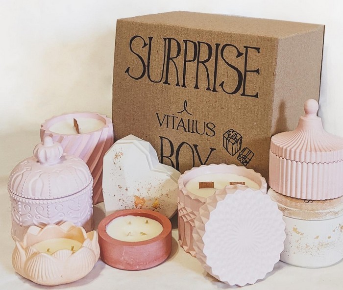 У продаж також виставлено подарункові бокси свічок, аромадифузори (у флаконах із брендовим логотипом «Vitalius»), а віднедавна — ще й мило власного виробництва. Щоб справитися з наростаючим обсягом замовлень і при цьому мати час для догляду за дітьми, Марина залучила в свою команду двох працівниць — 25-річну Мілу і 24-річну Дашу. Вони допомагають виготовляти свічки, а Даша ще й вручну займається художнім оформленням продукції. Нині команда «Vitalius» працює в окремому офісі з двома кімнатами. Перша облаштована під майстерню, а в другій знаходиться магазин власної продукції, де на поличках і стелажах представлено весь наявний асортимент.
