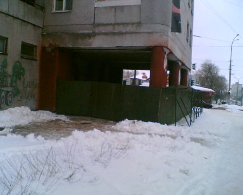 Об обвалах: 24..12 в 10.45 с верхних этажей дома, над аптекой отвалилось нечто железное (предположительно, часть балкона или крыши). За собой оно потянуло пару ледяных глыб. Чудом в этот момент никто не проходил мимо…