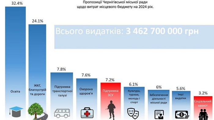 Інфографіка проєкту міського бюджету Чернігова від Дмитра Брижинського
