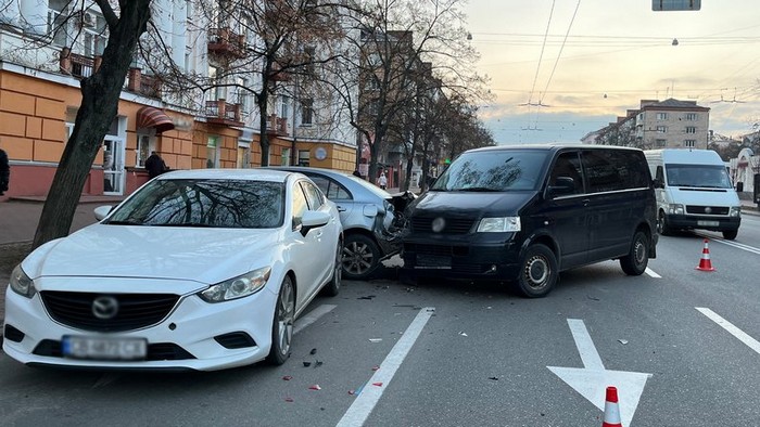 За її інформацією, водій Volkswagen Transporter наїхав на припарковані автомобілі. За яких обставин сталася аварія невідомо. Водій на момент прибуття поліції був без свідомості.