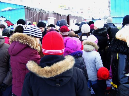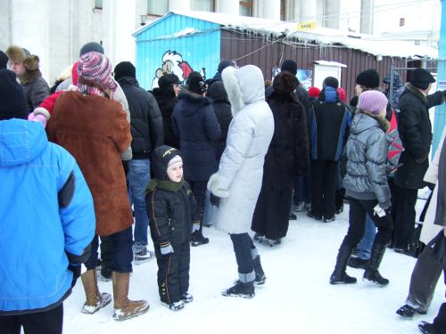 Запланировав попасть на сеанс в 12 часов 15 минут, подошла в 11.40. Невзирая на почти десятиградусный мороз, у кассы уже была подпрыгивающая и притоптывающая для согрева, разновозрастная очередь. Минут через 10 начали продавать билеты и довольно быстро обеспечили ими всех желающих.