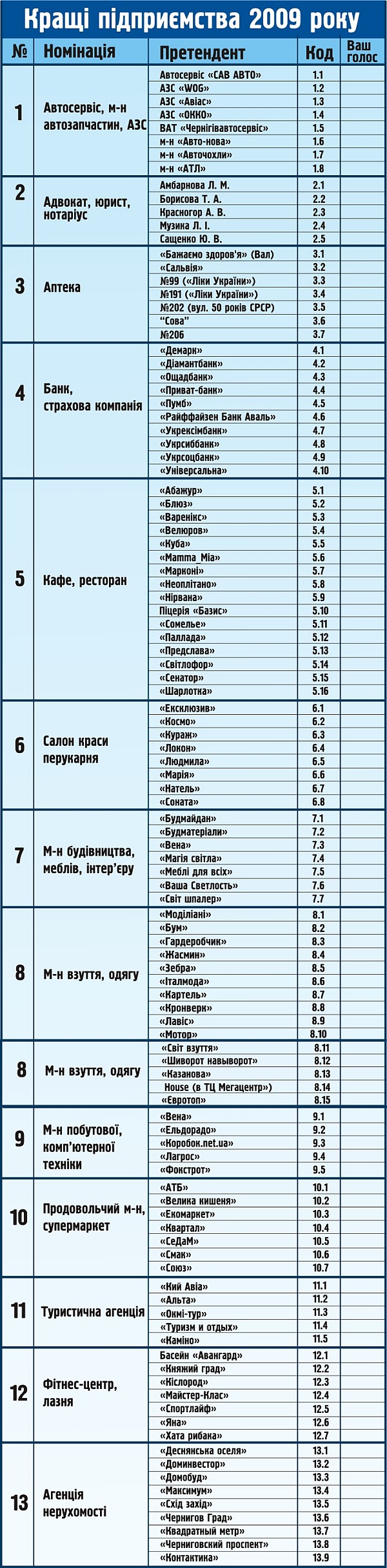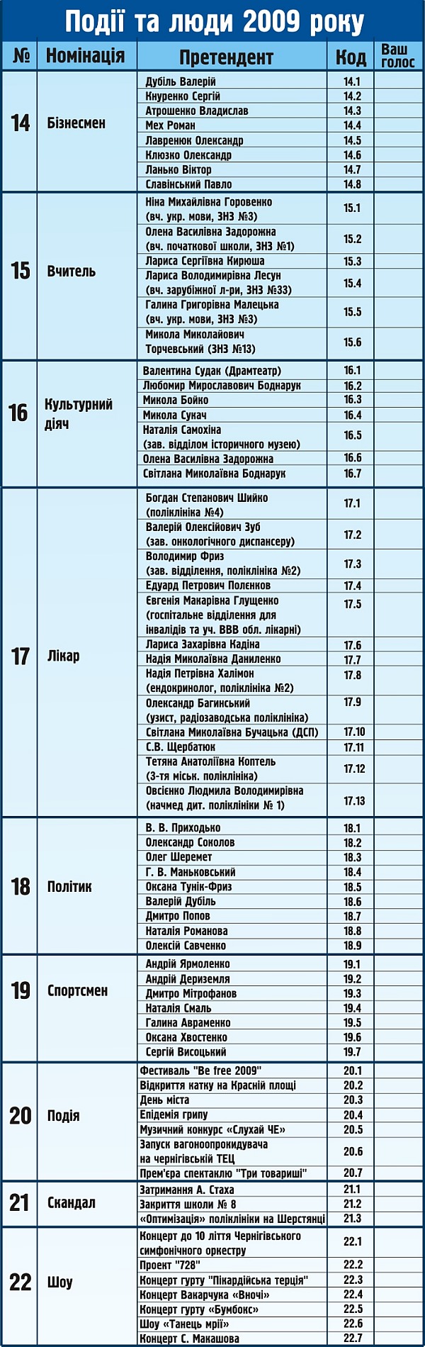 Хто в Чернігові найкращий? Висловіть свою думку!