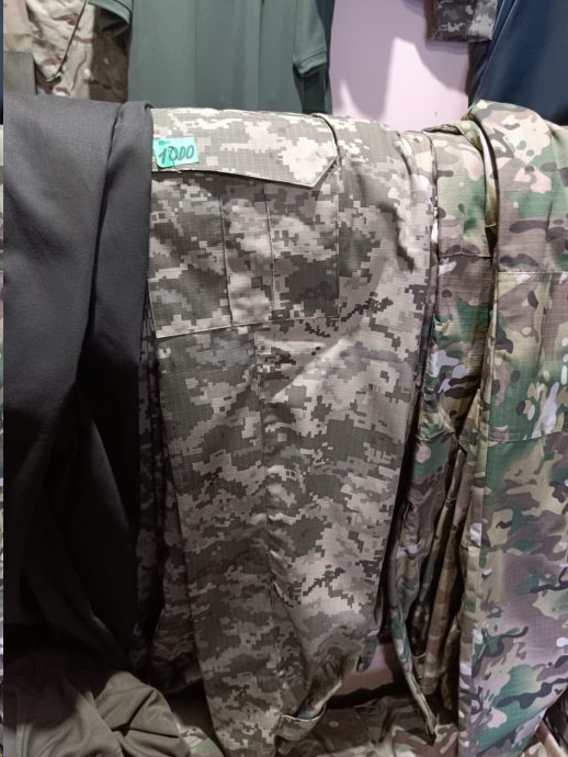 — Ні. їх мають видавати. Звісно, що будуть докуповувати. Це ж білизна, її треба кілька комплектів. Але поки що немає цього товару для магазинів. Хіба почнуть шити, наприклад, у Хмельницькому (там багато шиють). Щоб, як в армії, за їхнім зразком, їхніми лекалами. Але я точно собі брати не буду. У мене взагалі є надія, що ще пів року — і війна почне стухати. Виженуть рашистів. І в мене буде. — показує на штани з листочками, — товар для риболовлі, полювання — дубок, комиш. Я ж раніше тільки таким займався.