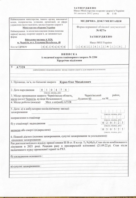 Поки Олег Курко, боровся із зовнішнім ворогом - російськими загарбниками, до нього підступно підкрався - внутрішній - рак. Та чоловік не здався, адже він справжній боєць, від моменту виявлення хвороби Олег пройшов 30 курсів хіміотерапії.