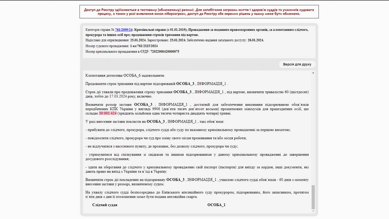 Пізніше, 18 січня 2024 року, Шевченківський районний суд міста Києва ухвалив рішення про зменшення застави зі 110 003 740 гривень до 30 001 424 гривень.