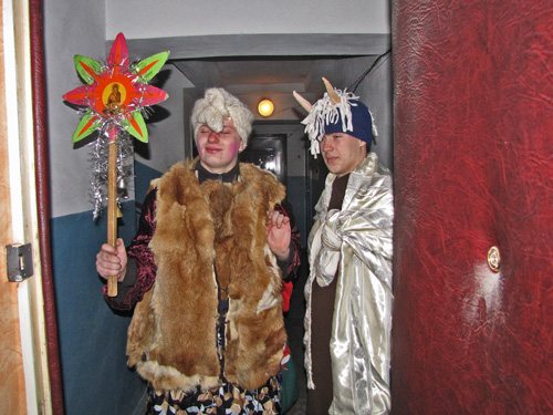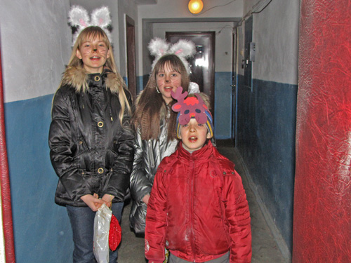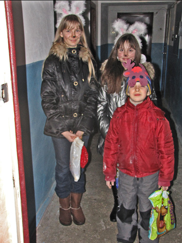 С наступлением темноты, детвора шумными стайками перебегает от дома к дому. По всему подъезду раздаются звонкие песни. Сколько дел и забот у детворы! Надо обойти каждый дом и никого не забыть, каждому спеть Коляду – а то хозяева обидятся!
