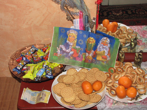 К этому вечеру хозяева готовятся заранее. Приготовлены сладости, монеты. Накрыт стол к ужину.