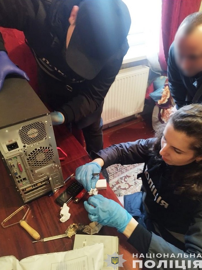 Також правоохоронці провели санкціонований обшук в квартирі зловмисника. В ході слідчої дії поліцейські виявили та вилучили поліетиленовий пакет та згортки фольги з порошкоподібною речовиною білого кольору, пристрої для паління, гроші, отримані від злочинної діяльності, набої калібру 5,45 мм та мобільний телефон.