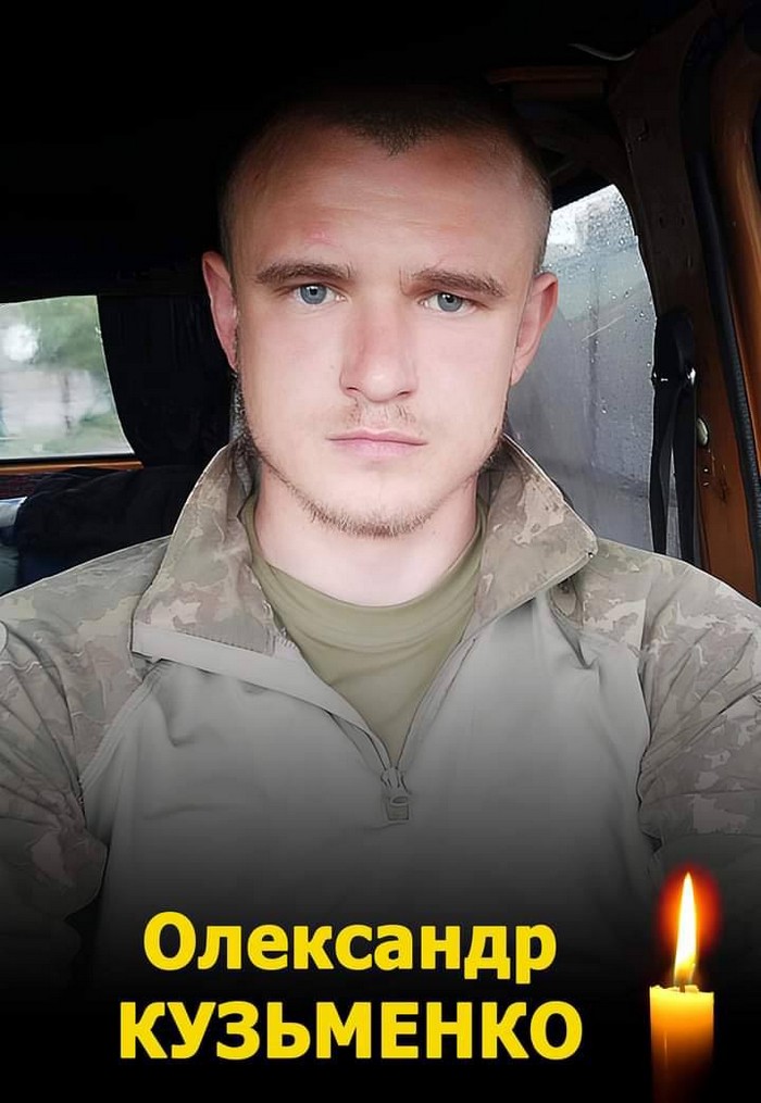 Старший солдат Кузьменко Олександр Володимирович народився 8 липня 1995 року в селі Авдіївка на Коропщині. Там ріс і закінчив школу, після навчання проходив строкову військову службу. Служив у Севастополі та Бердянську. У 2023 році долучився до лав ЗСУ, служив стрільцем-помічником гранатометника в окремій аеромобільній бригаді, боронив східні кордони України. 7 березня 2024 року під час виконання бойового завдання на Луганщині тримав мінно-вибухову травму. Проходив лікування на Київщині, з часом переведений до шпиталю на Львівщині, де 24 квітня 2024 року серце воїна зупинилося. Попрощалися та поховали у селі Авдіївка на Коропщині.