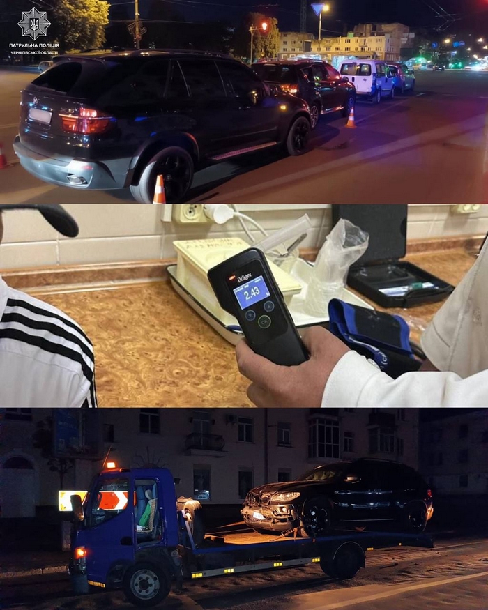 Під час спілкування з кермувальником BMW охоронці порядку помітили у нього явні зовнішні ознаки алкогольного сп’яніння. Чоловік погодився пройти огляд у встановленому законом порядку. Результат — 2,43 проміле.