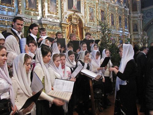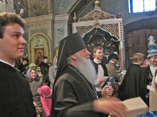 Архиепископ поздравил присутствующих со светлым праздником Рождества! В храме прозвучали рождественские песнопения и колядки в исполнении духовенства и семинарского хора.