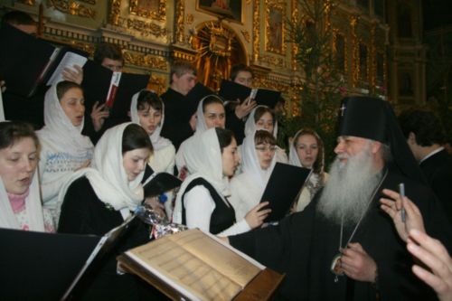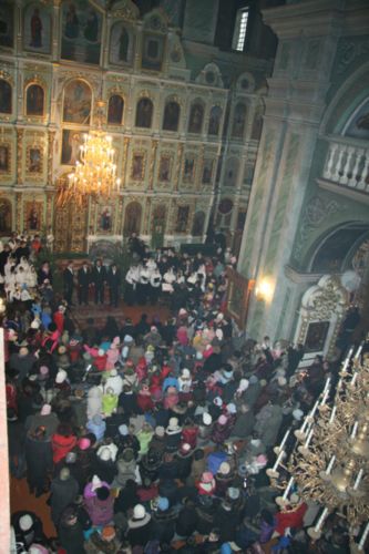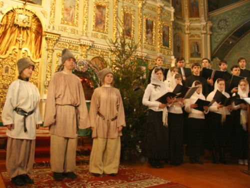 Після цих вітальних слів під склепінням Свято-Троїцького собору вихованцями духовного училища була зіграна священна історія про те, як праведний Йосип та Діва Марія прибули до Віфлеєму на перепис населення. Як вони не знайшли жодного вільного місця для відпочинку, і їм довелося зупинитися в печері, призначеній для стійла, серед сіна і соломи, де й народився Ісус Христос. Як на небі дивним світлом засіяла нова Віфлеємська зірка, що й сповістила про Різдво Христове. Як першими прийшли поклонитися Христу пастухи, яким про цю подію возвістив янгол, потім волхви, які піднесли Христу дарунки - золото, ладан і Смірну…