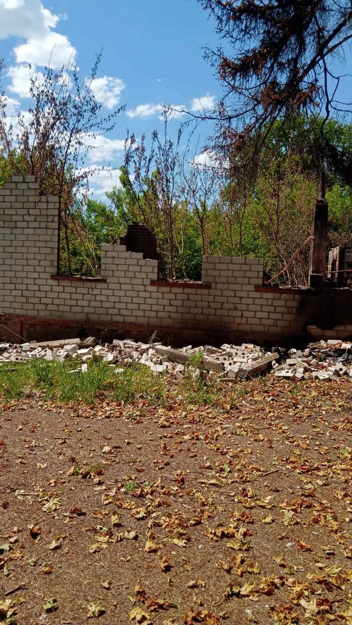 На знімках: зруйновані під час обстрілів у травні будівлі Мощенки