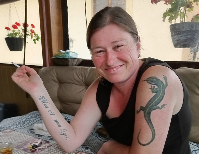 — Намагаюся забути те, що пережила. Обновила тату. У мене була чорна ящірка на лівій руці. Зробила її зеленою, — показує плече. На правій руці до ліктя в Наталії напис: «Моє життя — мої правила». Я така, що ні під кого підлаштовуватися не буду. Роблю все, як вважаю за потрібне.