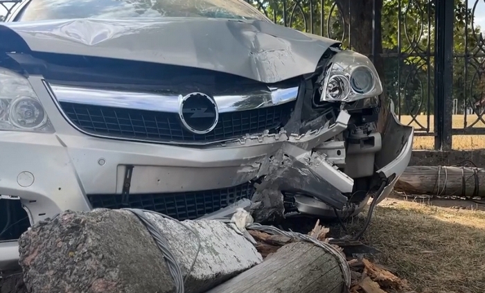 У результаті автомобіліст в’їхав у металеву огорожу педколеджу та збив частину електроопори.