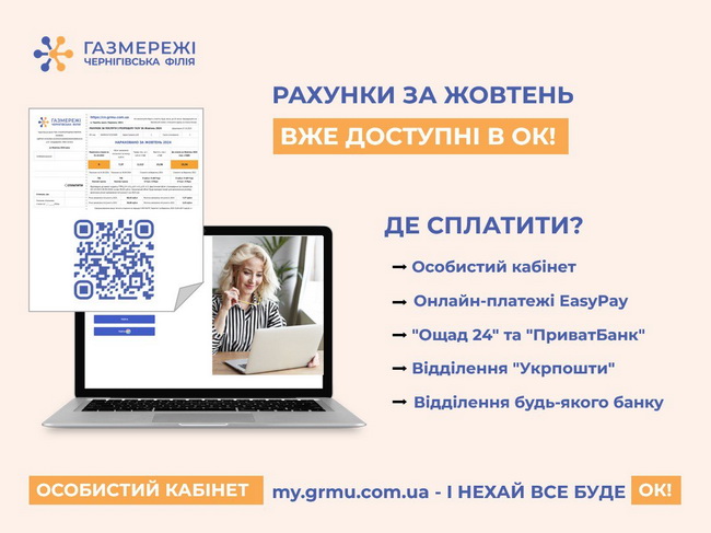 РЕКЛАМА Чернігівська філія "Газмережі" інформує, що для споживачів області вже сформовані електронні квитанції за послугу розподілу газу у жовтні 2024 року. Завантажити платіжку та сплатити онлайн у кілька кліків клієнти компанії можуть в особистому кабінеті «Газмережі» - https://my.grmu.com.ua/. Понад 30 тис. споживачів регіону віддають перевагу мультифункціональному сервісу особистого кабінета.