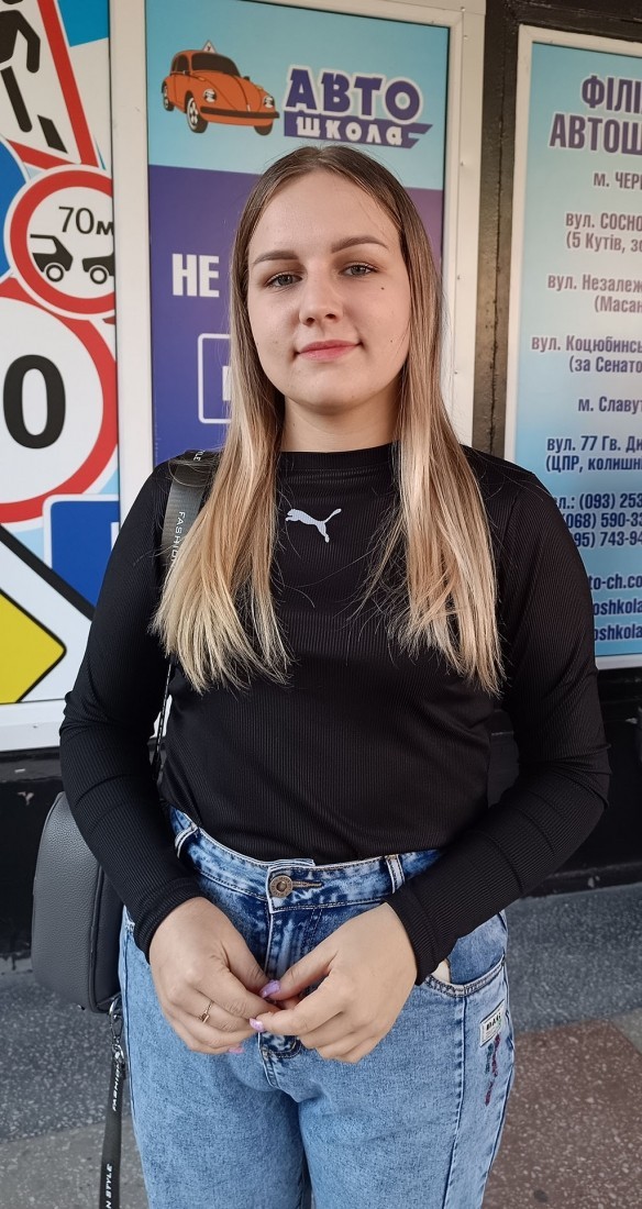 — Машина є в батька, — підійшла 19-річна Вікторія Іванова з Новгорода-Сіверського. Навчається в університеті «Чернігівський колегіум». — Хочу отримати водійські права на машину і на мотоцикл. Теорія та сама, тільки іспит додатковий здаєш окремо.