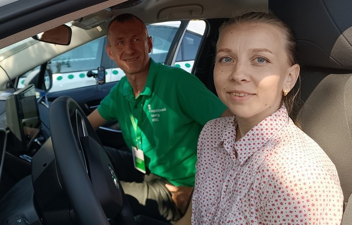 28-річна Світлана Ганжа вже сидить в «Тойоті» з екзаменатором Олександром Лубенцем, адміністратором територіального сервісного центру 7441. Практичний іспит Світлана складає вдруге. Теорію здала з першого разу.