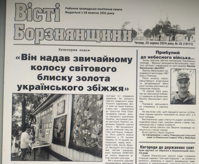 «Вісті Борзнянщини» – колись головна районна газета Борзнянського району Чернігівської області припинила своє існування. Минулого тижня вийшов останній її номер. Видання виходило в друк впродовж 93-ох років. Причина рішення про закриття – фінанси.