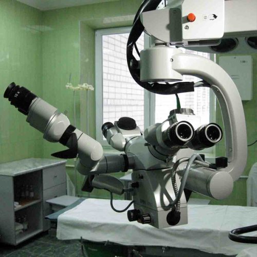 Представители всемирно известной фирмы Carl Zeiss настраивают операционный микроскоп