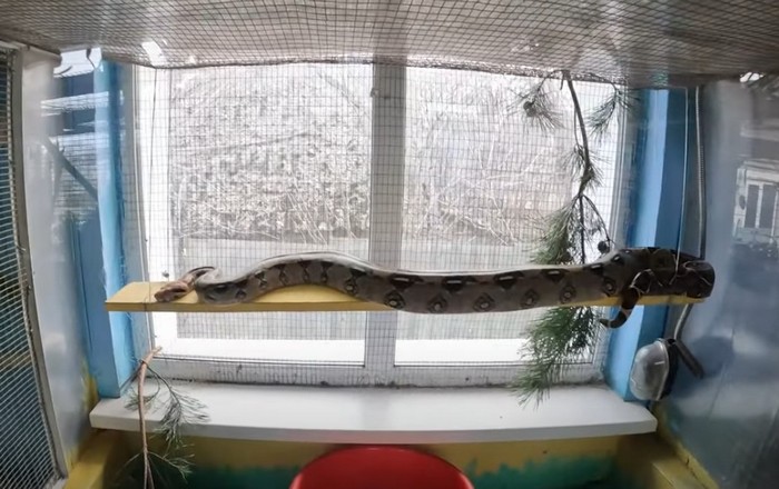 Із таким Зінаїда Сергіївна якось навіть сфотографувалася. Щоб умістився в кадр (а ці змії досягають довжини понад 2,5 м), його довелося вдвічі згорнути. До речі, пітони повільно ростуть протягом усього життя. А воно триває до 25 років.