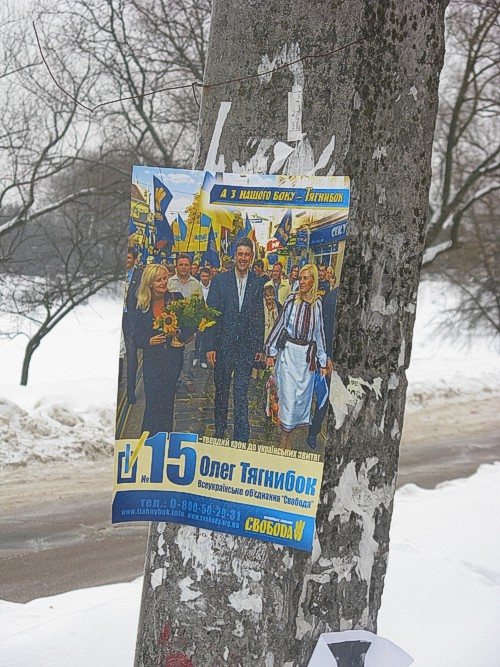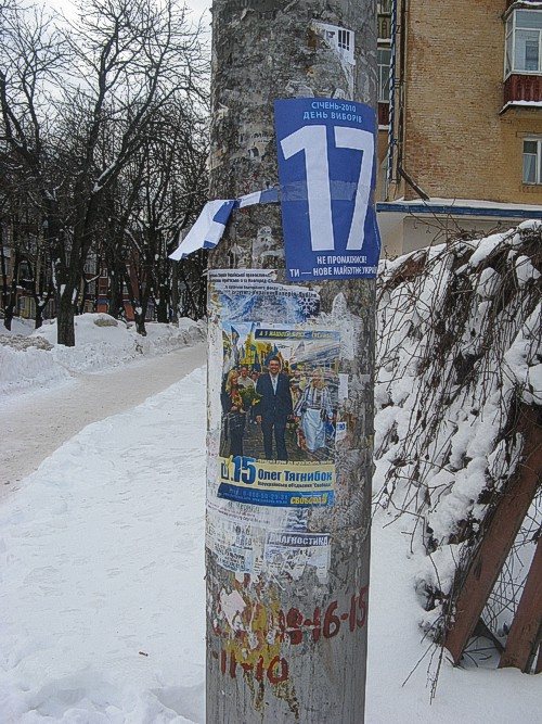 За день до выборов закон Украины предусматривает полное агитационное молчание. Любой вид политической рекламы под запретом, но как оказалось не для всех. Большинство политических сил заблаговременно позаботилось о том, чтобы снять с улиц города листовки, плакаты, борды. Но есть и такие, кто забыл об этой букве закона.