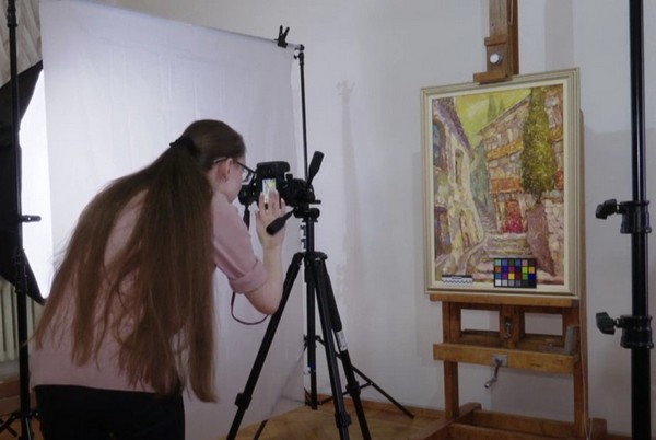 На кожну картину ставлять палетку автокорекції за кольорами та лінійку для масштабу, аби з точністю передати кожну деталь картини. Колекція художнього музею Галагана налічує близько 16 тисяч експонатів. Деякі з них постраждали, внаслідок російських обстрілів навесні 2022 року.