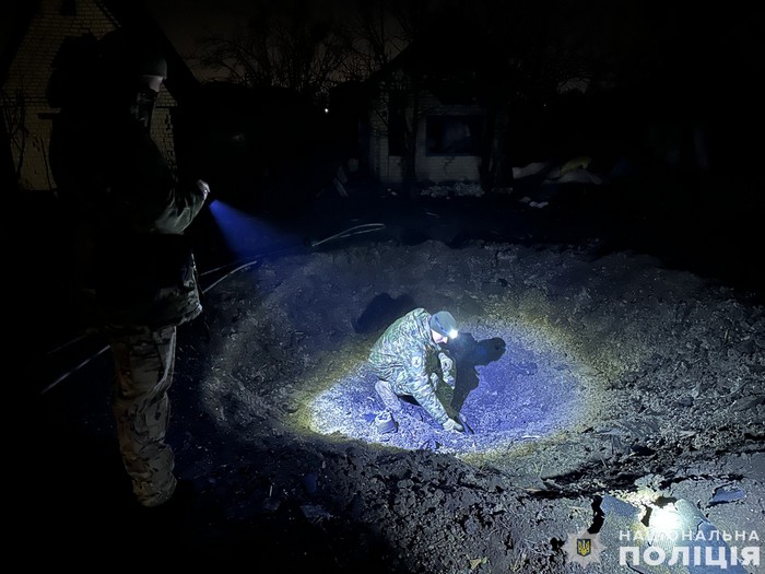 Поліція фіксує наслідки влучань та збирає докази чергових воєнних злочинів окупантів.
