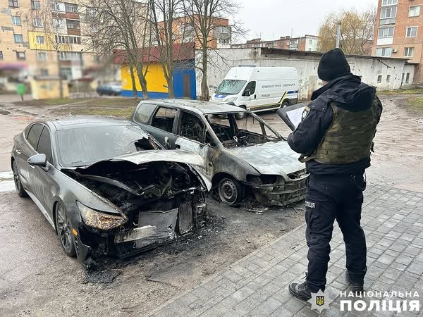 Під час огляду місця події поліцейські за участі фахівця пожежотехнічного підрозділу ДСНС дійшли обґрунтованого висновку, що причиною займання став підпал. Вогонь повністю знищив одну легкову автівку та майже вщент – сусідню. Третій легковик зазнав менших, однак теж суттєвих пошкоджень.