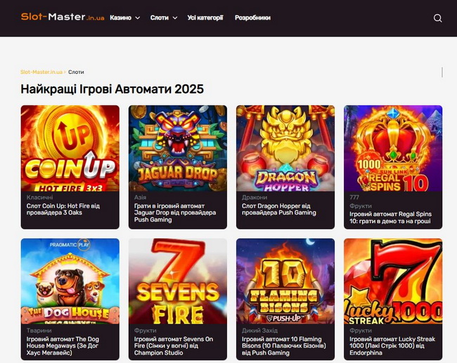 Тепер перед вами відкривається справжній азартний світ — колекція слотів Slot-master.in.ua. Тут є все: від класичних ігор із фруктами до сучасних хітів із 3D-графікою, як Gates of Olympus чи Book of Ra. Прокрутіть сторінку вниз, щоб побачити різноманітність, або скористайтеся пошуком, якщо вже знаєте, що шукаєте, наприклад, Sweet Bonanza. Фільтри допоможуть звузити вибір за провайдером чи тематикою — усе для того, щоб ви знайшли гру, яка вас зацікавить.