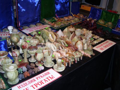 Людей в зале не было, и вся красота отлично просматривалась с улицы. Разумеется, свернул с намеченного маршрута и зашел в зал, где проходит выставка-продажа изделий из натурального камня.
