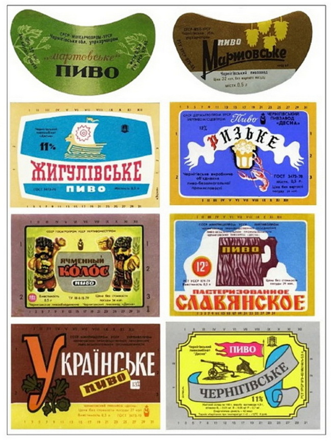 Пивні етикетки Чернігівського пивзаводу, друга половина ХХ століття.