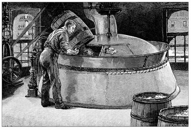 Процес варіння пива на пивоварні, типовий для ХІХ ст.