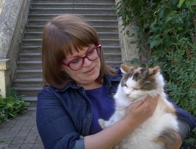 «Коли я повернулася з відпустки, вона дуже зраділа, що я прийшла та взяла її на руки, вона навіть почала мурчати, мурчала дуже довго і не виривалася. Дуже часто, якщо хтось інший бере на руки, то вона не дуже це любить. Тому що вона така кішка з характером, любить самостійно проводити час і ходити десь музейними залами.»,- каже жінка.