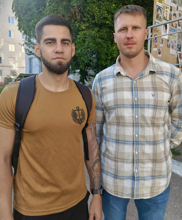 Зліва направо: Павло Афісов та Олексій Ануля. 14 серпня, Чернігів, прийшли зустрічати побратимів, звільнених з російського полону