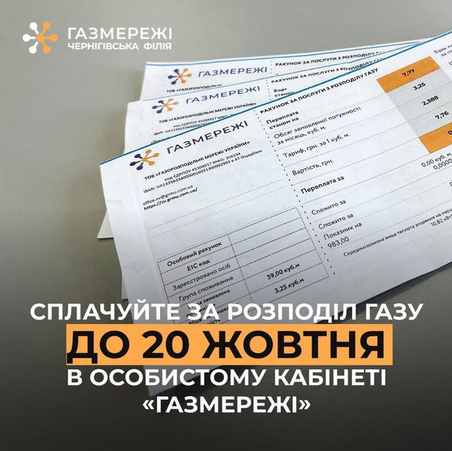 Якщо ні, час ще є! Нагадуємо клієнтам Чернігівської філії «Газмережі»: розрахуватись за розподіл газу потрібно до 20 числа включно.