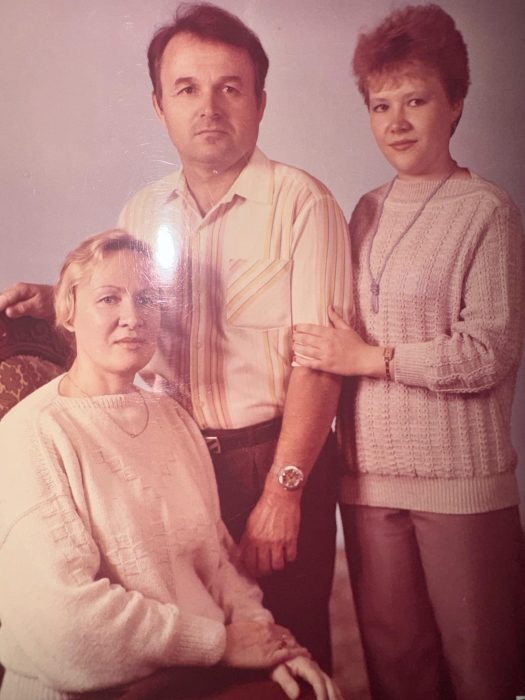 Лариса, крайня справа, з батьком Михайлом та матір’ю Вірою