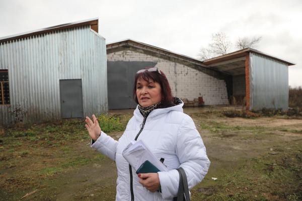Ольга Ляховець біля колишньої ферми, де планують збудувати завод