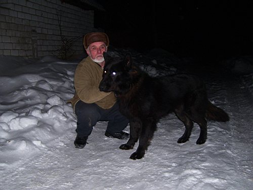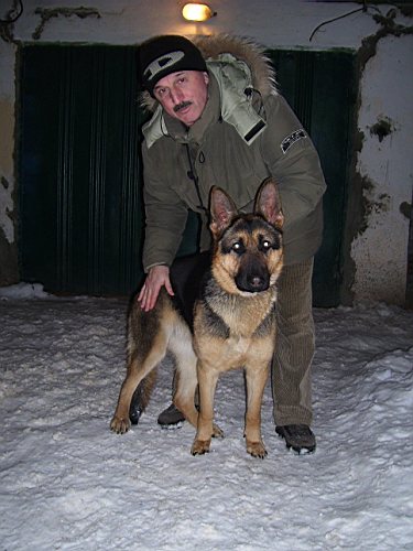 Барс – немецкая овчарка, 3 года. Собака приобреталась в одном из армейских питомников, по отбраковке. Учил сам по литературе. Характер сложный – только недавно начал подчиняться командам хозяина. Намордник и поводок признает. Приучен к цепи и будке. Во время прогулок по хутору намордник часто снимаю. Хороший охранник, но главное – друг. Привит. Родословной нет.