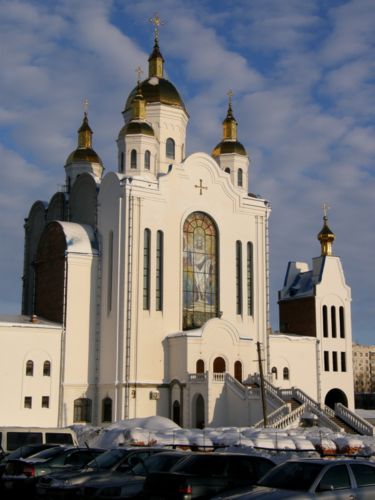 Новые храмы города, относящиеся к УПЦ Московского патриархата, также не избежали аналогий с архитектурой "Третьего Рима". Особенно это касается храма Всех Святых Черниговских возле рынка "Нива". В его основе лежит тип соборного московского храма 17 века, с 5-ю куполами на высоком четверике, подклетом (или нижним храмом) и ведущей на верхний ярус массивной лестницей.
