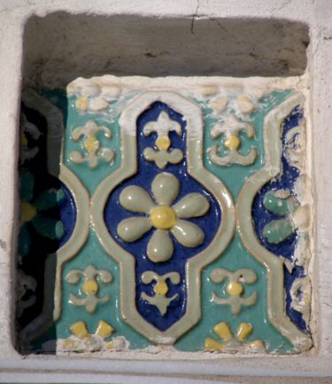 Поливной керамический изразец на фасаде Коллегиума